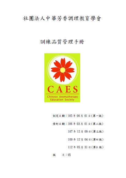 社團法人中華芳香調理教育學會 訓練品質手冊於112/05/31修訂公告